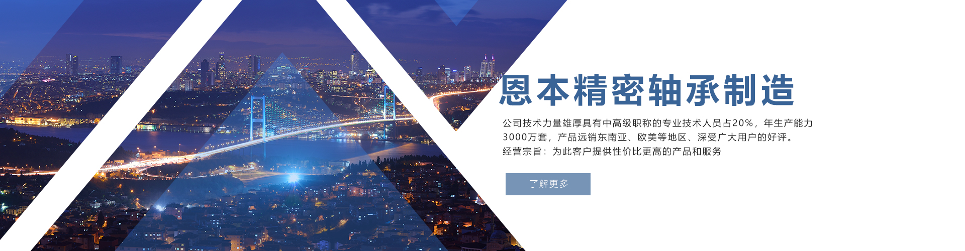无锡恩本精密轴承制造有限公司是专业生产微小型深沟球轴承、薄壁柔性轴承、角接触轴承及各类非标轴承的企业,产品注册商标为“ENBEN”和"EBZC"。产品广泛使用于各类家用电器、低噪音电机、汽车、电动工具、电讯设备、光学仪器、办公器械、机器人、安防器材及运动器材等领域。公司配备了目前国内最先进的生产设备及完美的检查设备、按ISO9001:2000/QS-9000质量体系组织生产,生产的轴承精度高、寿命长、噪音低。公司技术力量雄厚具有中高级职称的专业技术人员占20%,年生产能力3000万套,产品远销东南亚、欧美等地区、深受广大用户的好评。